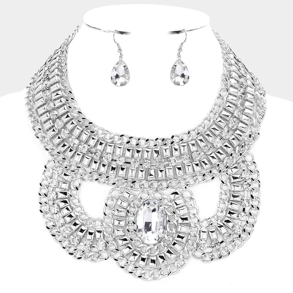 silver oval statement necklace